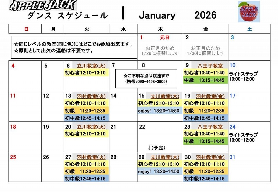 ⭐1月の第1週のレッスンはお正月のため、第5週に振り替えます。